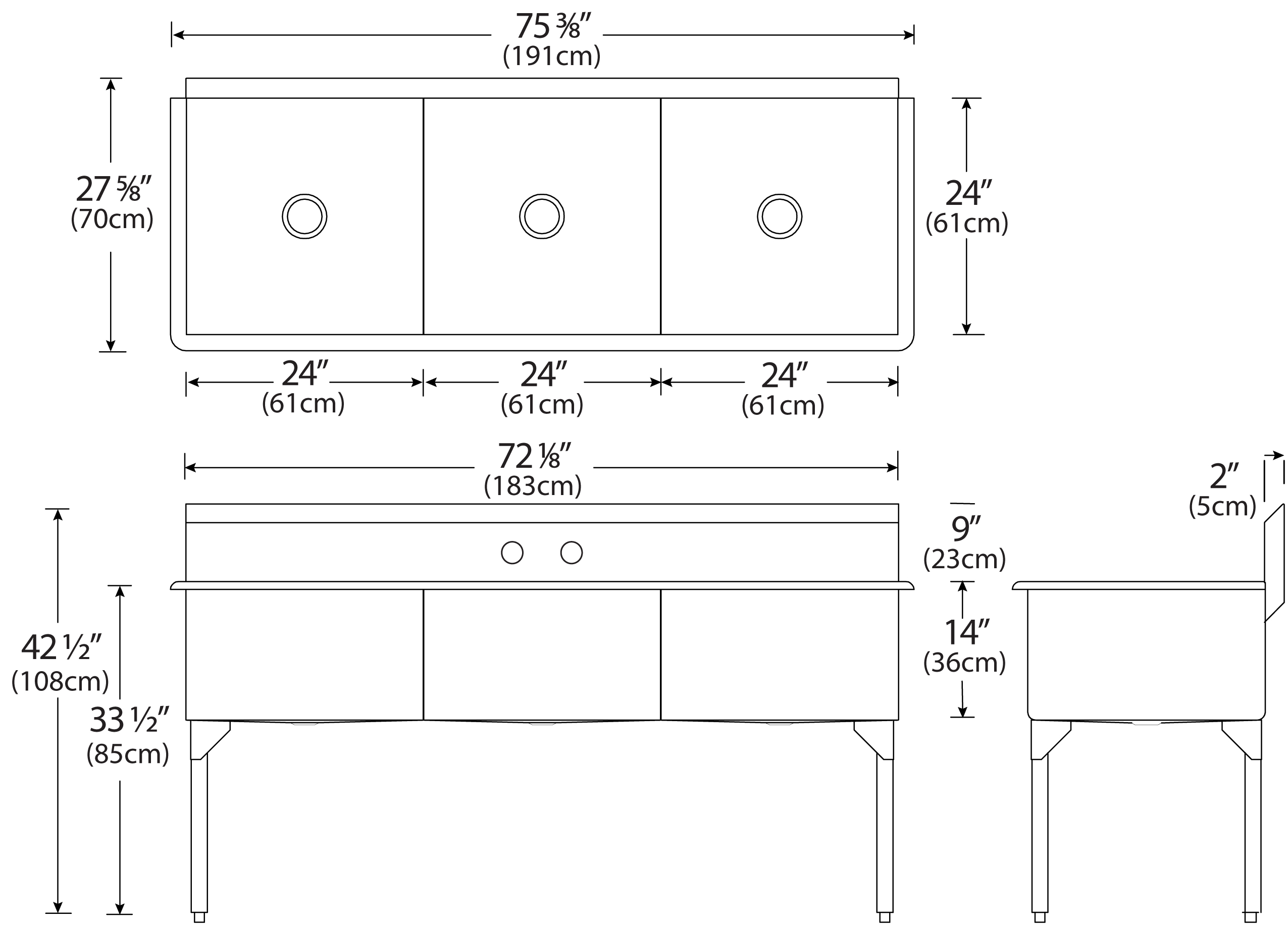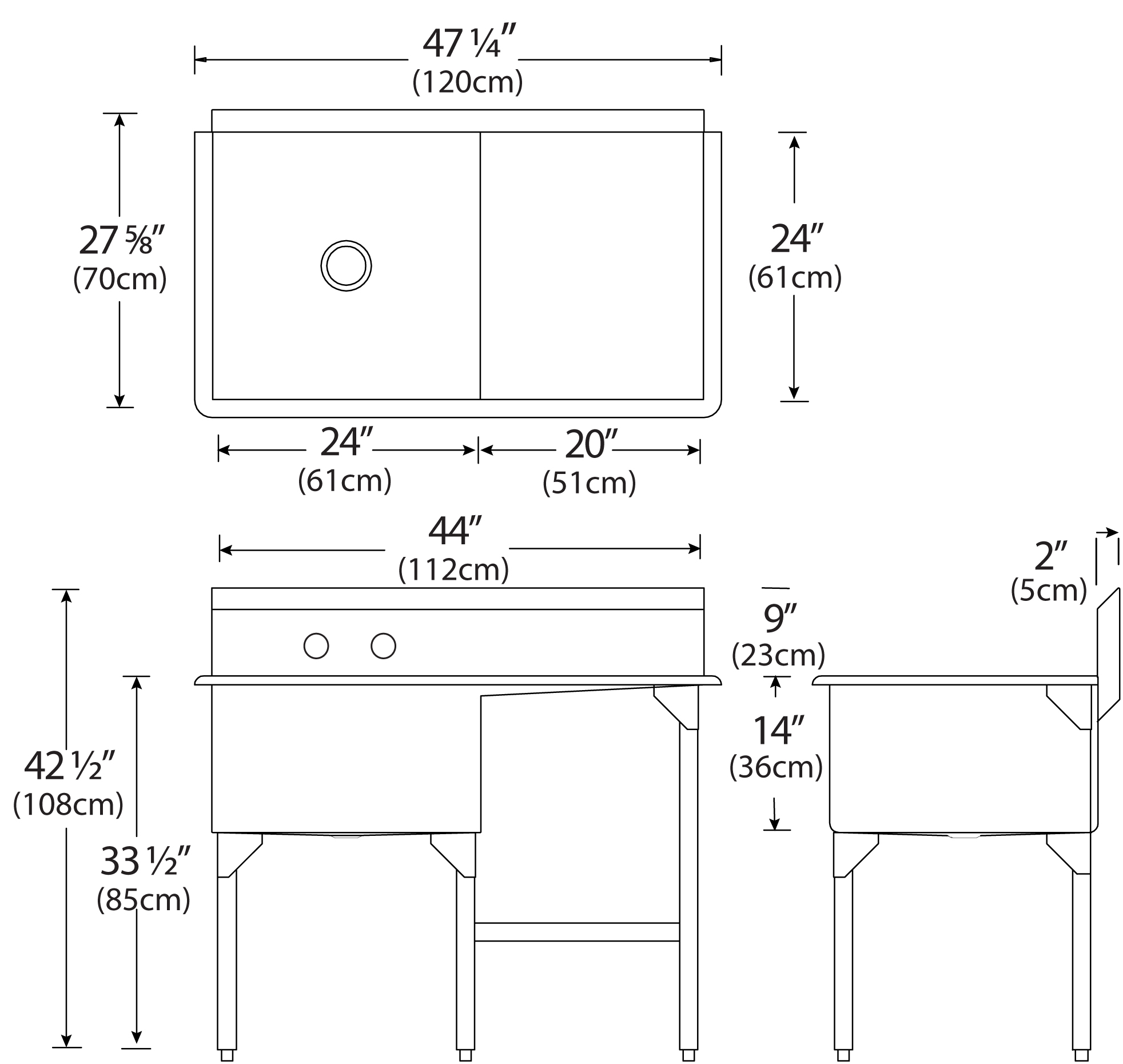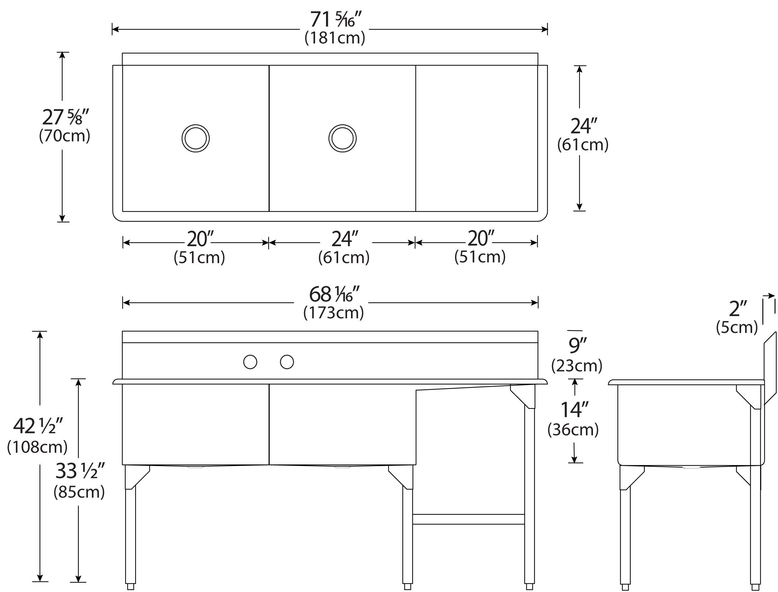 Scullery Sinks – Coved Bowl Corners – Front & Back – 7500