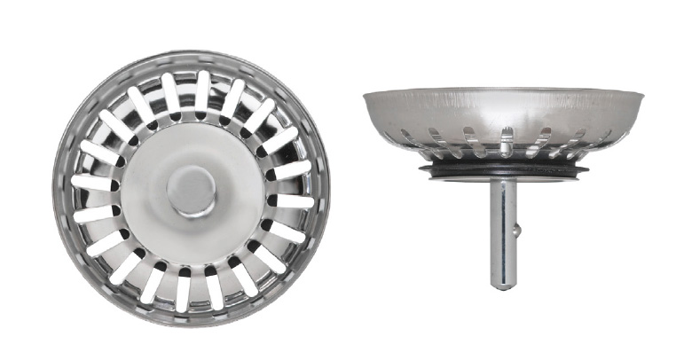 Premium basket strainer, similar to Kohler strainer, chrome plated brass, “O” ring seal and brass locknut, tailpiece not included.