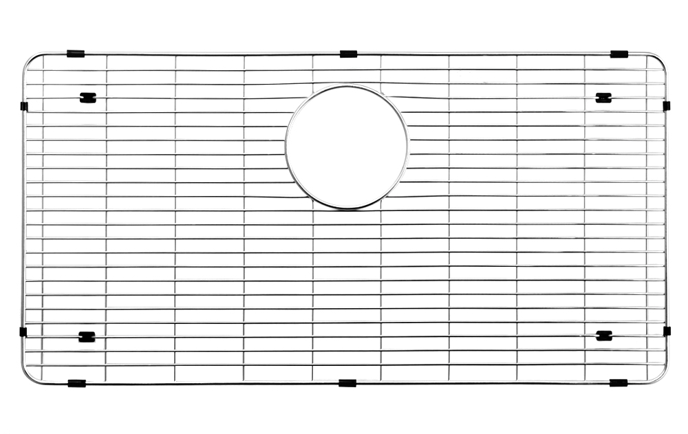 Stainless steel bottom grid. Overall dimension of: 14 7/16” x 28 ⅜” (37 cm x 72 cm), fits bowl size: 16 ¼” x 30 ¼” (41 cm x 77 cm).