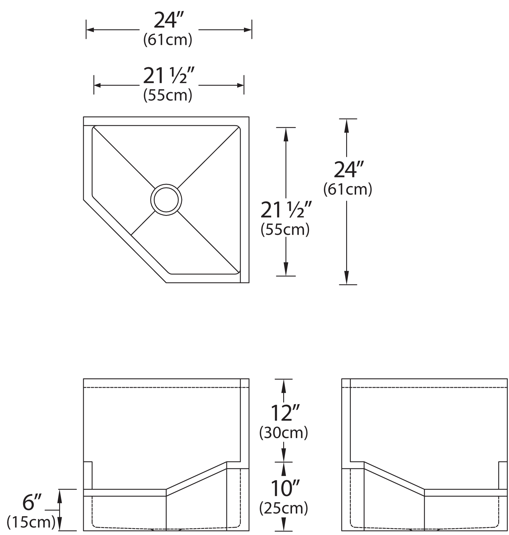 Single Mop Sink, polished satin finish, radius coved bowl corners, integral corner splashguards. Can be installed in either left or right corners. Sound deadening. One piece wall hangers included. Recessed front to accommodate mop bucket.