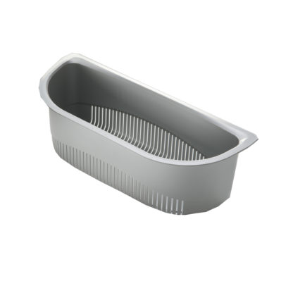 Colander made from food grade plastic. Overall dimension of: 5 9/10” x 14 ⅖” x 4 3/10” (15 cm x 37 cm x 11 cm), fits Adelaide and Melbourne collections.
