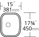 Stainless steel single bowl undermount Oliveri sink. Overall dimensions of 17 ¾” x 15″ (43 cm x 38 cm), bowl dimensions of 16 ½” x 13 ¾” (33 cm x 20 cm), and a depth of 8″ (20 cm). Centre waste, 3 ½” (9 cm) strainer included.